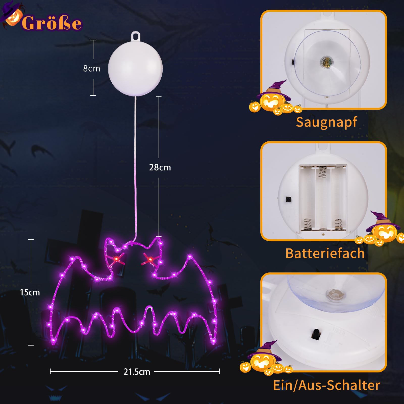 Halloween Deko Lichter - Fledermaus Lichterkette Mit Timer Für Fenster & Balkon