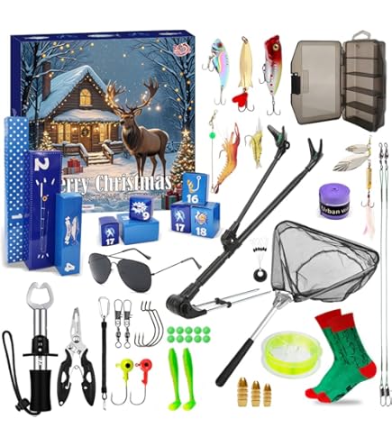 Der ultimative Adventskalender für alle Angelfans! 24 Tage voller Überraschungen mit hochwertigen Ködern und praktischen Boxen.✔️ 24 Überraschungen: Vom 1. bis 24. Dezember✔️ Vielfältige Köder: 6 Minnows, 6 Softbaits, 10 Spinnerbaits✔️ Inklusive 2 Köderboxen: Für ordentliche Aufbewahrung✔️ Besonderer Köder: Mit propellerförmigem Schwanz für extra Wirkung✔️ Elegante Verpackung: Macht sich super unter dem ChristbaumJeden Tag eine neue Angel-Überraschung! Die Köder sind perfekt auf verschiedene Fischarten und Gewässer abgestimmt. Der Spezialköder mit seinem besonderen Schwanz erzeugt tolle Spritzer und lockt selbst vorsichtige Fische an. Die beiden Köderboxen sind super praktisch - so bleiben die Haken nicht hängen und alles ist schön ordentlich. Ein durchdachtes Geschenk für jeden Angler, ob Anfänger oder Profi. Weihnachtsfreude pur für alle, die das Angeln lieben! Mach deinem Liebsten oder dir selbst eine riesige Freude 😊