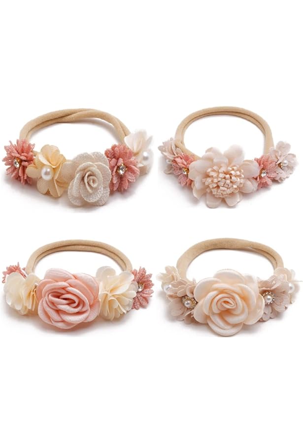 3 Süße Blumen-Stirnbänder Aus Nylon Für Baby-Mädchen - Zart & Elastisch