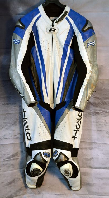 XLS Blue Carbon Lederkombi Kurzgröße - Motorradkombi Mit Protektoren Schwarz/blau