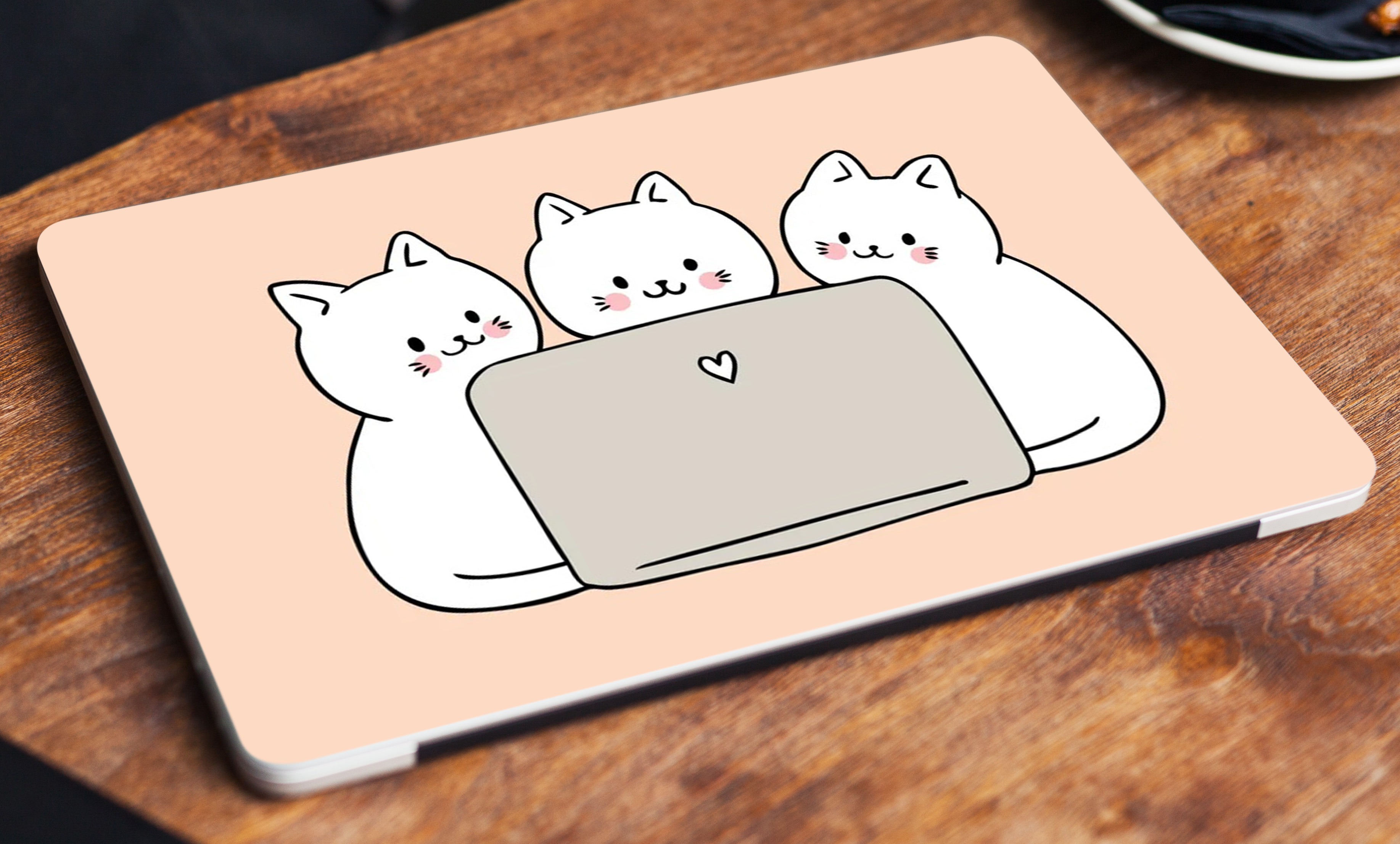 PLIGREAT Süße Katze Laptop Aufkleber - Abdeckung Für 15 Zoll Laptops Mit Katzen Selfie Design