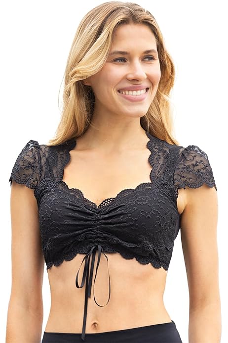 Dirndlbluse Mit Spitze - Weiße Trachtenbluse Kurzarm Für Damen