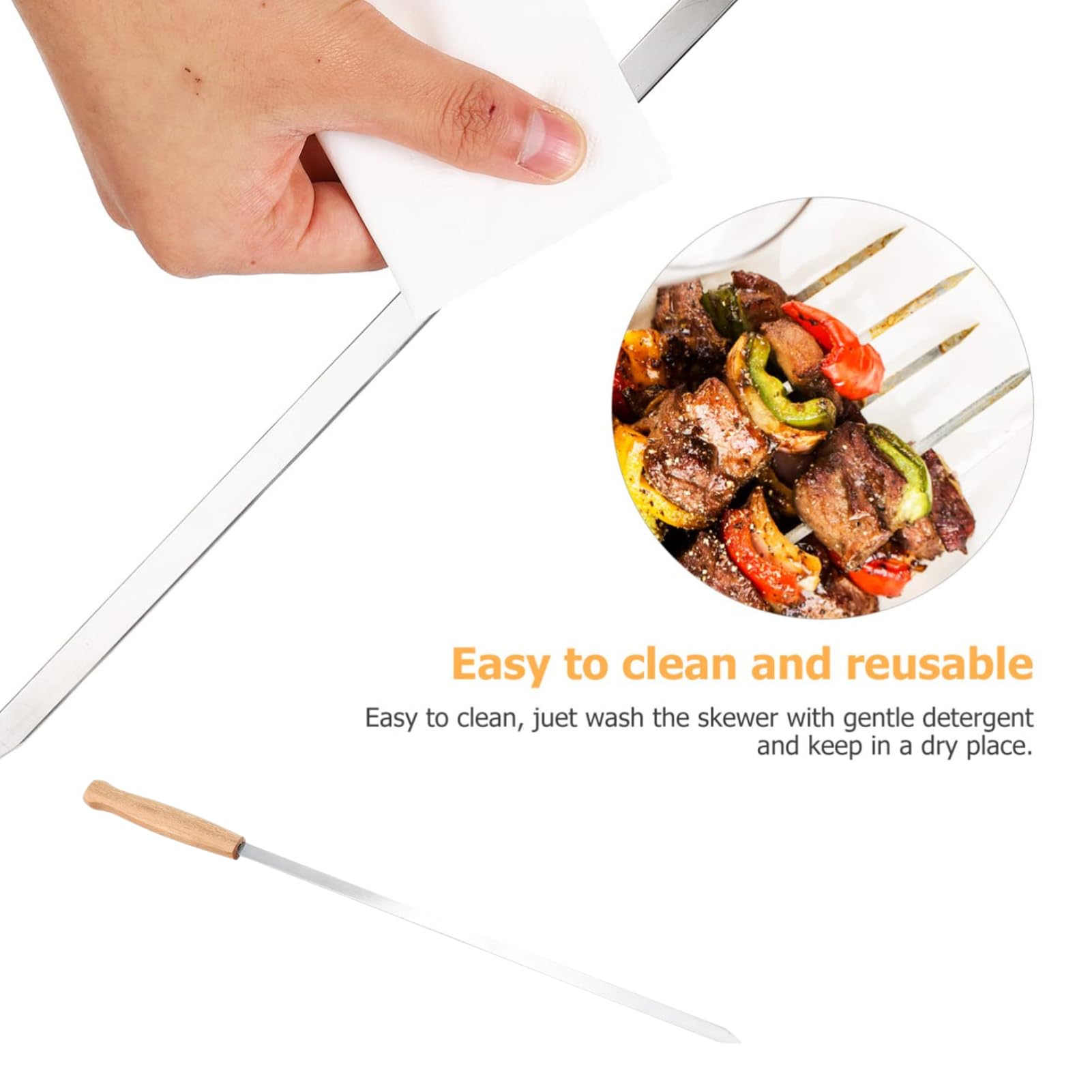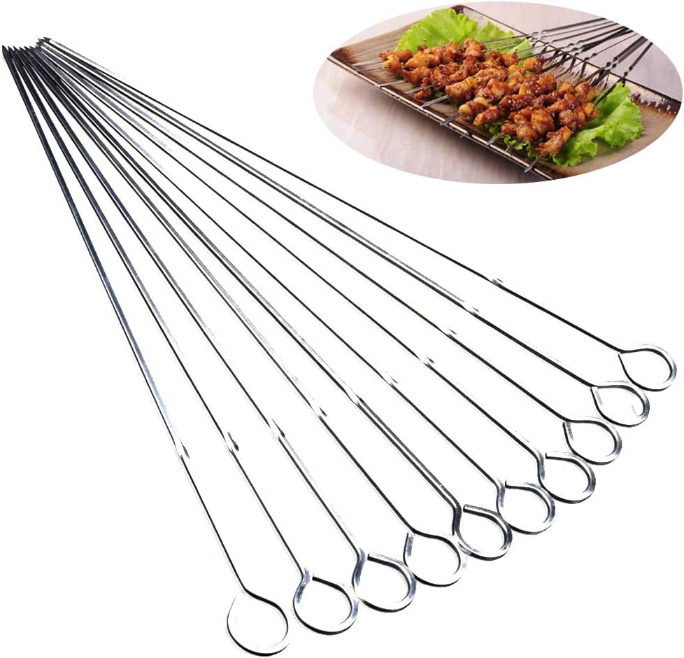 Mmmmh, Grillzeit! Mit diesen DEWIN Edelstahl-Spießen wird jedes BBQ zum Event. Das 8-teilige Set ist perfekt für die nächste Gartenparty, Camping-Ausflug oder Picknick im Freien.\n\nAus hochwertigem Edelstahl gefertigt sind die Spieße rostfrei, korrosionsbeständig und total langlebig. Die flachen, scharfen Klingen gehen easy durch Fleisch, Hähnchenflügel oder Würstchen - nichts bröckelt ab!\n\nMit ca. 43,5cm Länge sind die Spieße ideal für die meisten Grills. Die Holzgriffe bleiben kühl und liegen gut in der Hand. Und nach dem Grillen? Einfach abwaschen - die glatte Oberfläche reinigt sich super easy.\n\nHohe Temperaturbeständigkeit bedeutet: Du kannst die Spieße immer wieder verwenden, ohne dass sie sich verformen. Viel besser als diese Einweg-Alu-Teile! Perfekt für Grill-Fans, die Wert auf Qualität und Nachhaltigkeit legen. Hol dir das Set und werde zum Grill-Meister!