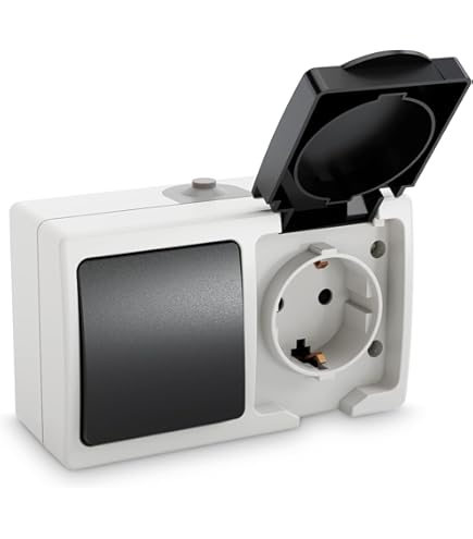 Sicherheit für draußen! Diese Electraline Steckdose mit IP44 Schutz ist perfekt für den Einsatz im Freien oder in Feuchträumen. Die praktische Kombination aus Schuko-Steckdose und Schalter ermöglicht dir, angeschlossene Geräte bequem ein- und auszuschalten. Mit 16A und 250V~ belastbar ist sie ideal für Gartenarbeit, Balkon oder Terrasse. Der spritzwassergeschützte Deckel schützt zuverlässig vor Regen und Feuchtigkeit. Die einfache Aufputz-Installation macht die Montage zum Kinderspiel - einfach Kabel anschließen und fertig! Perfekt für Garage, Keller, Werkstatt oder eben überall dort, wo es mal nass werden kann. So bist du auch outdoor immer stromversorgt!