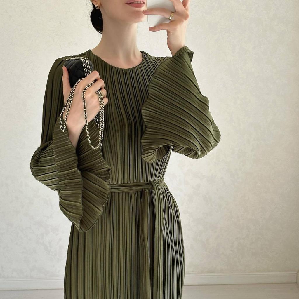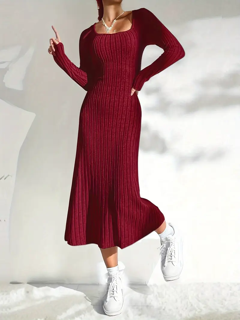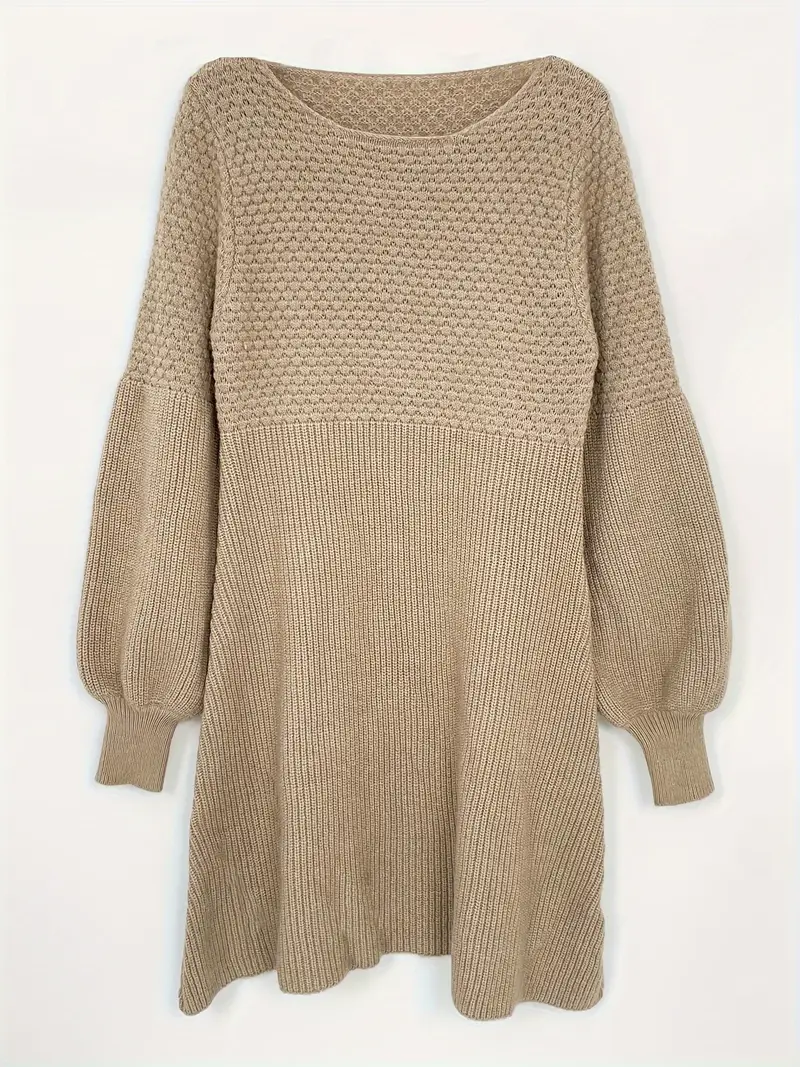 Damen Strickkleid Große Größen - Laternenärmel Midikleid Mit Taschen