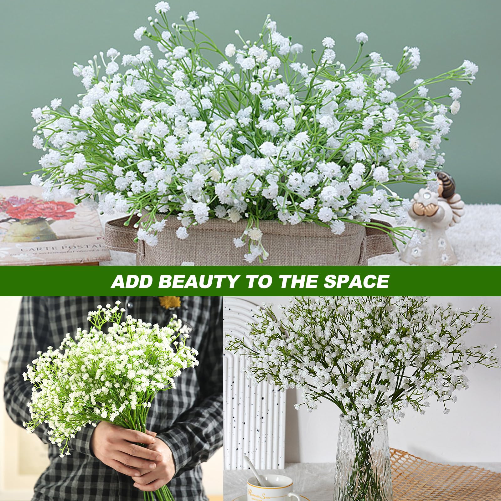 Dieses künstliche Schleierkraut von Homcomodar sieht täuschend echt aus! Im Set sind 12 Stück enthalten, jede Blume ist etwa 50cm hoch und hat satte 81 Blüten - das ergibt einen richtig vollen, buschigen Look. Aus umweltfreundlichem Kunststoff gefertigt, sind die Blumen langlebig und pflegeleicht - einfach mal mit einem Tuch abwischen. Perfekt für Hochzeiten, wo sie ewige Liebe symbolisieren, oder zur Dekoration von Zuhause, Büro oder Geschäften. Die Stiele lassen sich leicht biegen oder kürzen, sodass du sie perfekt an deine Bedürfnisse anpassen kannst. Auch für DIY-Projekte, Blumensträuße oder Tischdekorationen ideal. Selbst bei Feuchtigkeit oder Sonne verblassen die Blüten nicht. Einfach ein wunderschöner Deko-Klassiker, der immer gut aussieht!