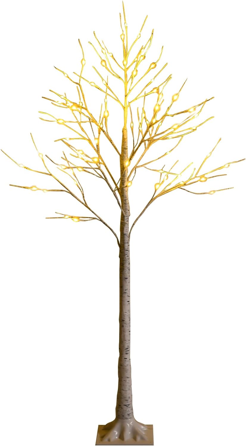 COSTWAY LED Birkenbaum 186cm - Beleuchteter Weihnachtsbaum Mit 168 LEDs