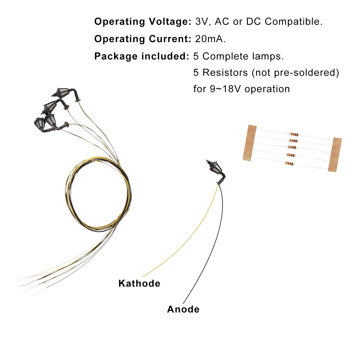 Coole Details für deine Modellbahn! Diese CNANRNANC Straßenlaternen bringen Licht in deine Miniaturwelt. Je 14cm hoch, aus Metall und ABS. Wählbare Spannung: 3V oder 12V - passend für die meisten Anlagen. In Schwarz, Dunkelgrün oder Grau erhältlich. Leuchten in warmem Weiß. Perfekt für Modelleisenbahnen, Dioramen oder Miniatur-Gärten. Einfach verkabeln und schon wird's gemütlich in deiner kleinen Welt. Mit 3 Stück im Set kannst du gleich eine ganze Straße beleuchten. Lass deine Kreativität spielen!
