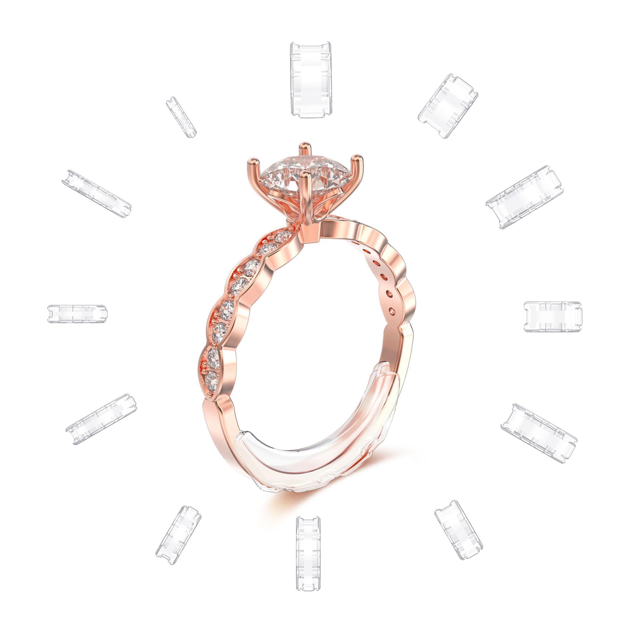 Dein Lieblingsring passt nicht mehr? Kein Problem mit diesen unsichtbaren Ringverstellern! Das 12-teilige Set enthält verschiedene Formen für runde und flache Ringe. Aus hautverträglichem Kunststoff - einfach zuschneiden und in den Ring einklicken. Vollständig transparent - niemand sieht dass du einen Versteller verwendest! Perfekt für Damen und Herren, wenn der Ring etwas zu groß geworden ist. Einfach zu Hause anpassen - kein teurer Juwelier-Besuch nötig. So passt jeder Ring wieder perfekt!