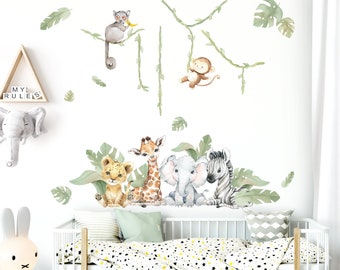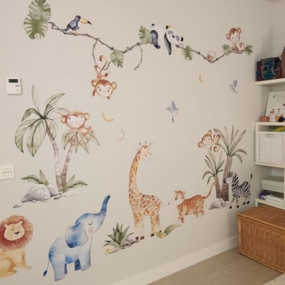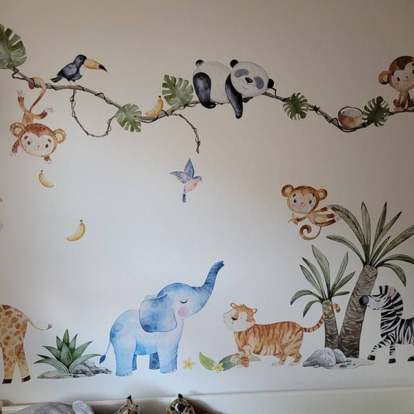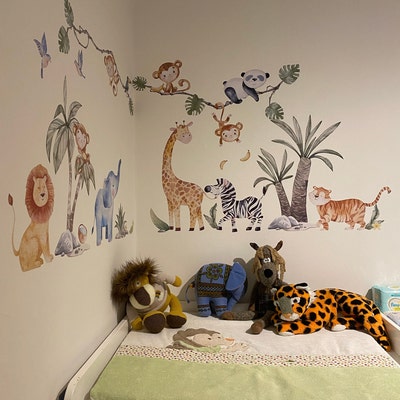 Wandtattoo Dschungel Tiere - Großer Aufkleber Mit Hirsch, Tiger & Giraffe Für Kinderzimmer