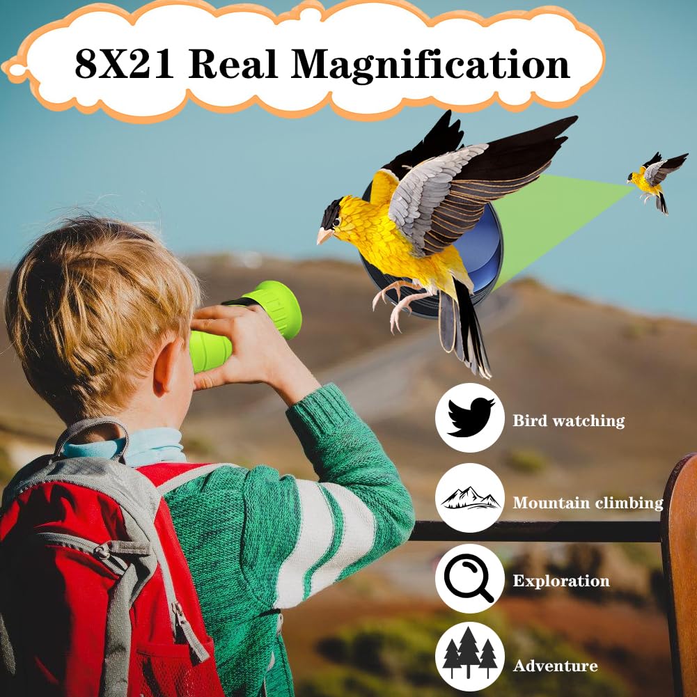 Kinder Fernglas 8x21 Vergrößerung - Mit Tragetasche & Reinigungstuch | Für Outdoor Abenteuer