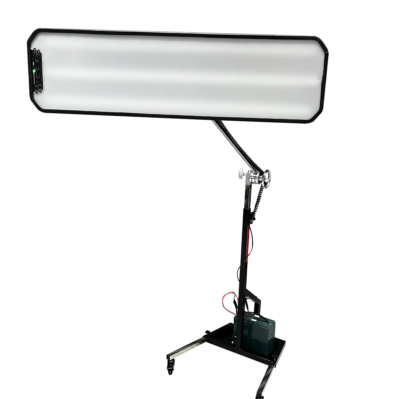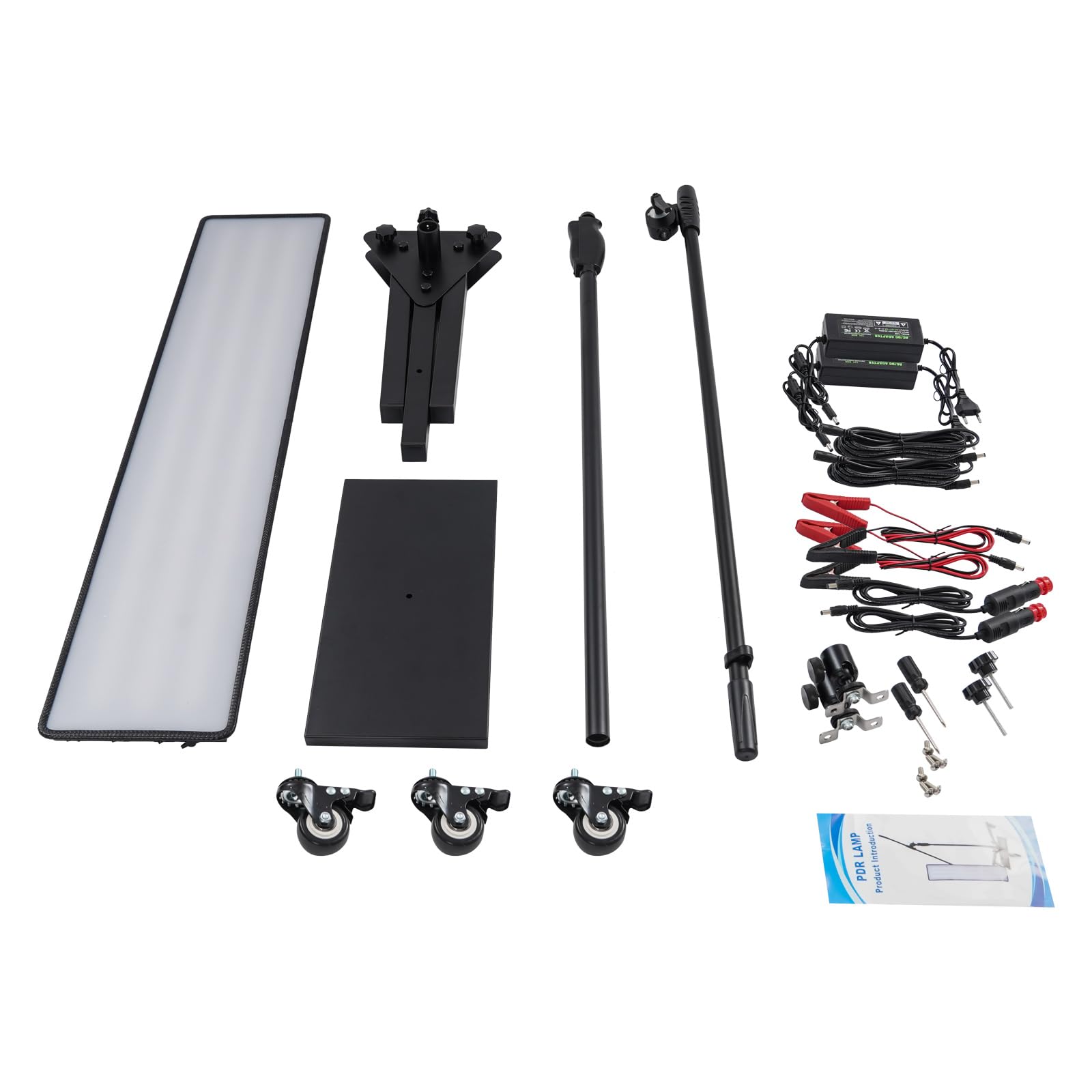 Verstellbare Höhe von 110-163,5 cm passt sich jedem Fahrzeug an. 3 Universalräder mit Bremsen für stabilen Stand. Lichtpanel-Größe: 19,5x92 cm für große Arbeitsbereiche.