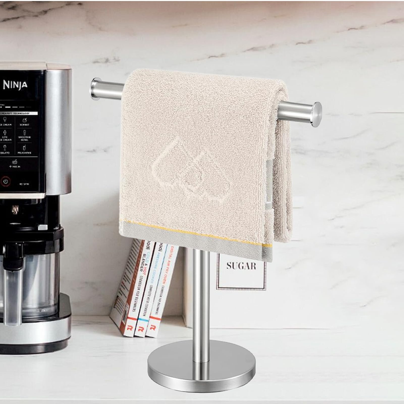 Platzprobleme im Badezimmer? Dieser T-förmige Handtuchhalter aus Edelstahl ist die Lösung! Er steht einfach auf der Ablage oder dem Waschbecken - ganz ohne Bohren! Die Maße von 32x27,5x15 cm sind perfekt für 1-2 Handtücher. Die Oberfläche ist superglatt und verletzt nicht deine Hände. Der gewichtete Sockel macht ihn extra stabil, damit er nicht umkippt. Rostfrei und pflegeleicht - ideal für die feuchte Badezimmerumgebung. Sieht nicht nur ordentlich aus, sondern spart auch Platz! Perfekt für Küche, Gäste-WC oder wo auch immer du Handtücher griffbereit haben willst.