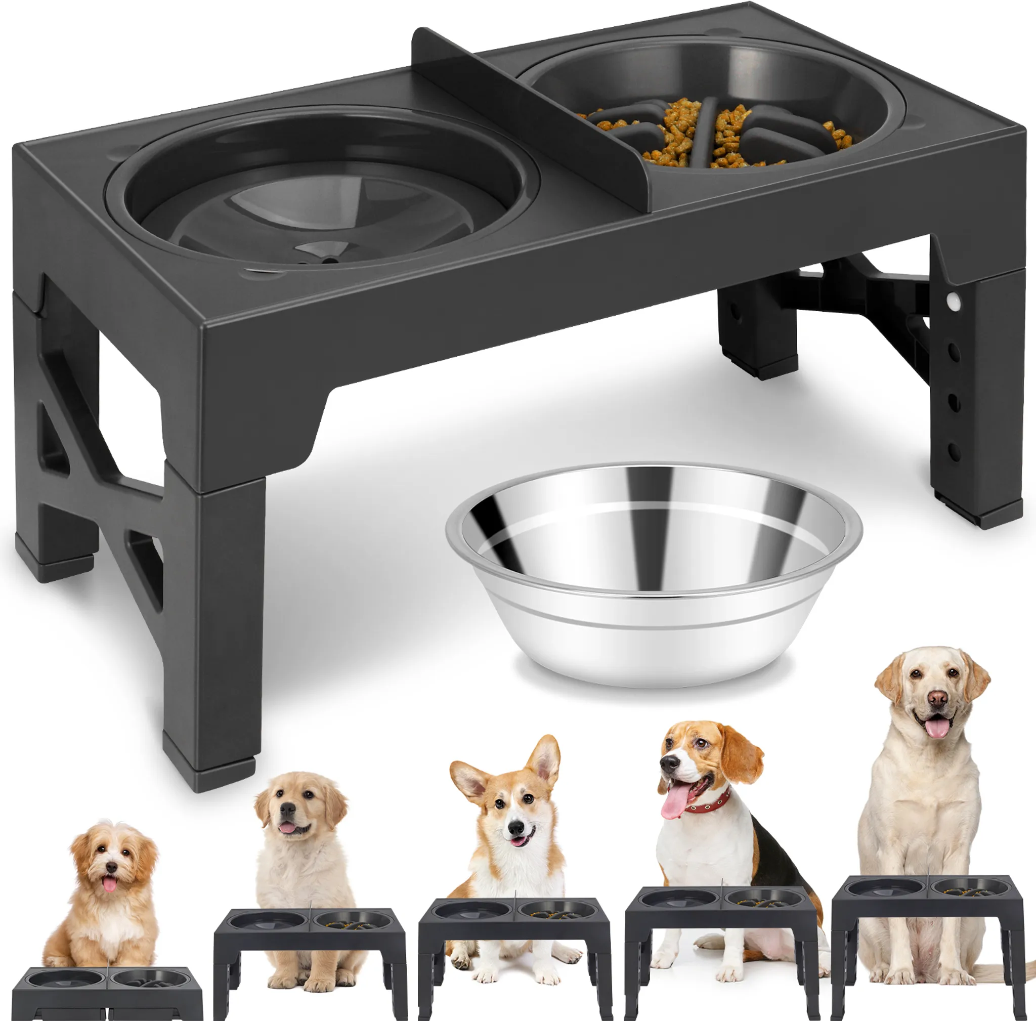 Erhöhter Hundenapf 5-fach Höhenverstellbar - Edelstahl Doppelnapf Mit Schallwand