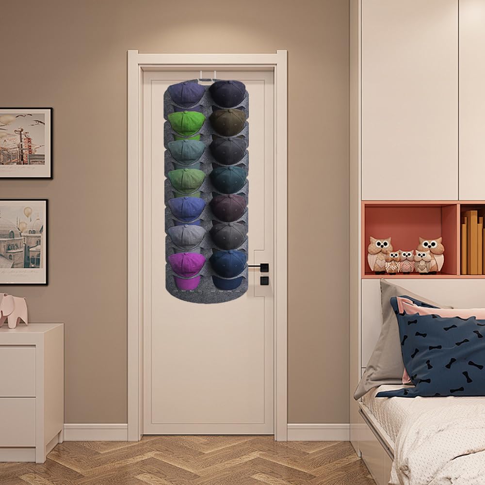 Endlich Ordnung im Kappenschrank! Dieser Wandhalter für Baseballkappen hat Platz für ganze 14 Mützen - und das ohne dass sie verknittert oder verformt werden. Aus weichem Filz gefertigt, der deine Lieblingskappen schützt. Das gebogene Design passt sich perfekt der Form der Kappen an. Einfach an die Wand oder hinter die Tür hängen - kein Werkzeug nötig! Und wenn du mal Platz brauchst: einfach zusammenklappen und verstauen. Kann auch für Sonnenbrillen, Kopfhörer oder andere Kleinigkeiten verwendet werden. Macht aus dem Chaos eine ordentliche Sammlung - deine Kappen werden es dir danken!