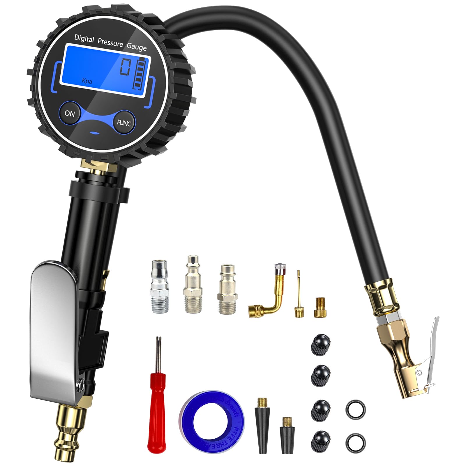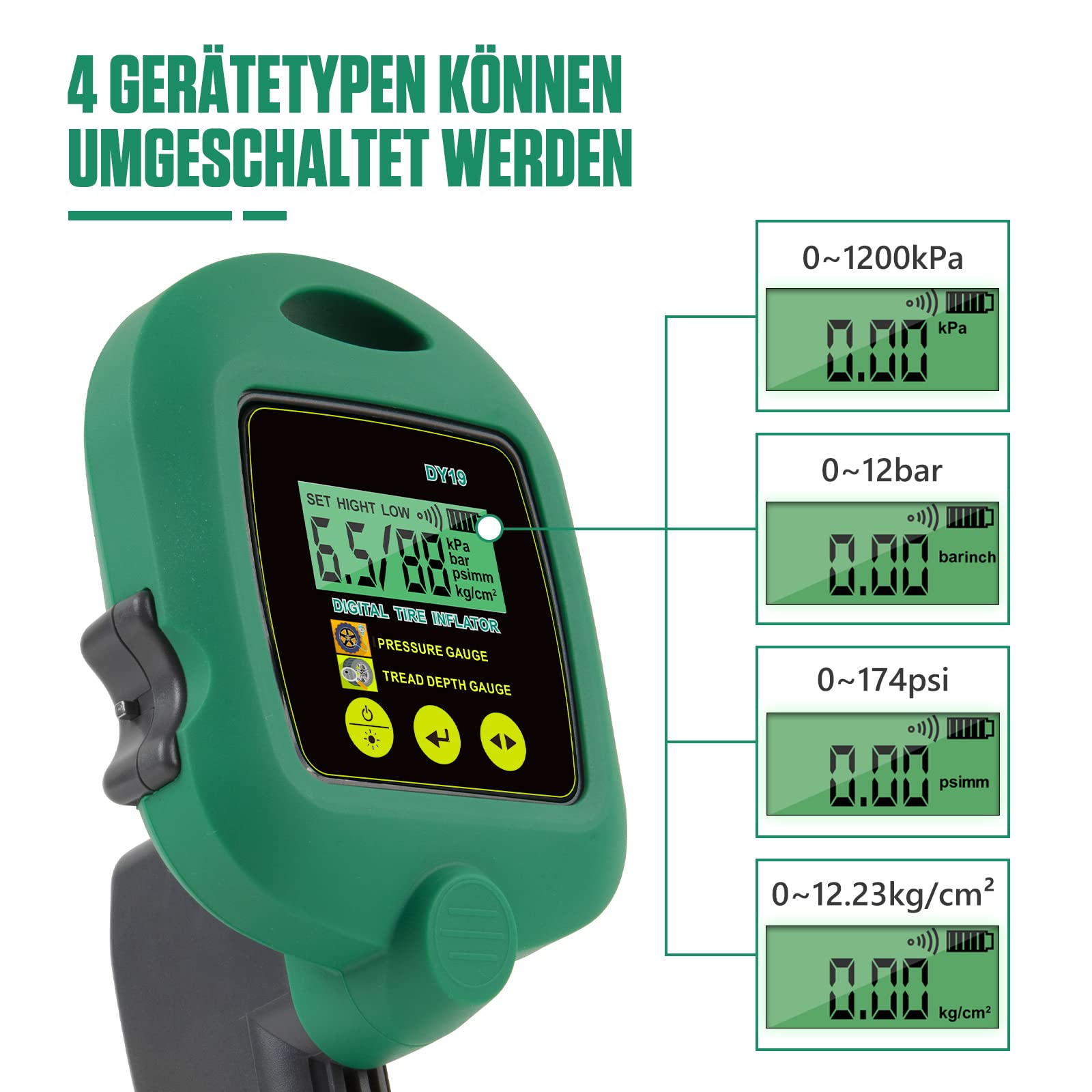 Autofahrer, Motorrad-Fans und Radler - dieser Reifendruckprüfer ist ein Muss für jede Werkstatt! Mit nem präzisen Manometer misst du genau den Druck in deinen Reifen - von 0-220 PSI, 0-16 Bar oder 0-1600 kPa. Das integrierte Entlüftungsventil lässt dich bei zu hohem Druck einfach Luft ablassen. Der ergonomische Griff mit Entriegelungsknopf liegt super in der Hand und die verriegelbare Ventil aus Legierung sorgt für sicheren Halt. Das Barometer hält auch extremen Temperaturen stand und der dickere Schlauch ist explosionssicher. Einfach am Ventil montieren, Druck ablesen und bei Bedarf anpassen - so einfach war Reifendruck-Kontrolle noch nie! Passt für die meisten Autos, Motorräder, Fahrräder und sogar E-Fahrzeuge. Mit dem praktischen Aufbewahrungsloch immer griffbereit. Mehr Sicherheit durch perfekten Reifendruck!