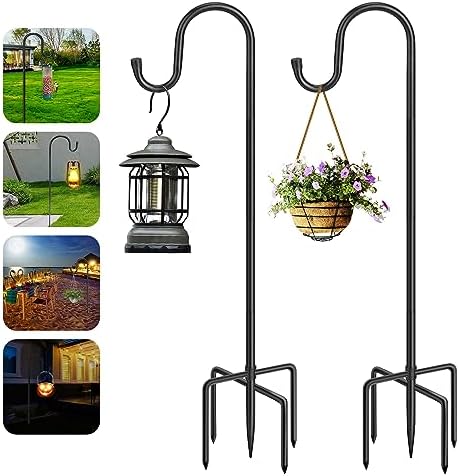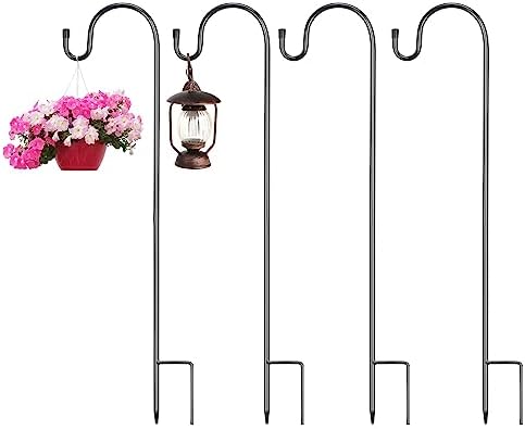 Diese praktischen Gartenschäferhänge sind echte Alleskönner für deinen Garten! Im 4er-Set bekommst du stabile Metall-Halter in 120cm Höhe, die sich super einfach im Boden befestigen lassen. Der Clou: Die 5-zackige Basis sorgt für viel mehr Stabilität als normale 2- oder 3-zackige Haken - selbst bei Wind bleibt alles sicher stehen!\n\nAus hochwertigem Metall mit schwarzer Pulverbeschichtung rostfrei und extrem langlebig. Perfekt für Blumenampeln, Vogelhäuschen, Solarleuchten, Windspiele oder Laternen. Wenn du sie mal nicht brauchst, lassen sie sich einfach zerlegen und platzsparend verstauen.\n\nEinfach in den Boden stecken, dekorieren und fertig! Die Haken sind so vielseitig, dass du deine Gartendeko jederzeit schnell ändern kannst. Ob auf der Terrasse, im Beet oder auf dem Balkon - mit diesen Haltern bringst du Ordnung und Charme in deine Outdoor-Bereiche. Ein Muss für jeden Hobby-Gärtner!