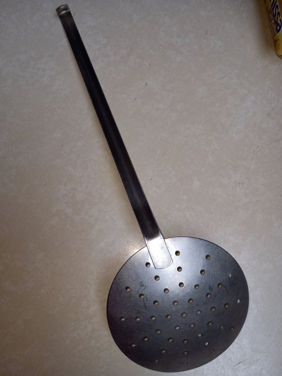 Hallo Küchenchef! Diese vielseitige Frittierkelle von Kerafactum ist dein neuer bester Freund in der Küche. Ob du Krapfen, Berliner, Donuts oder Klöße aus dem Fett holen willst - mit diesem 10cm großen Edelstahl-Löffel geht's easy und sicher.