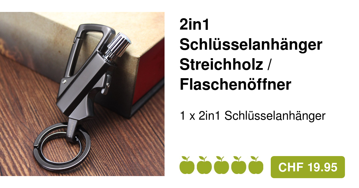 Immer ein Feuer dabei! Dieses coole Feuerzeug sieht aus wie ein stylischer Schlüsselanhänger, ist aber ein voll funktionsfähiges permanentes Streichholz. Aus robuster Zinklegierung - hält über 1000-mal Benutzung stand und überlebt normale Feuerzeuge bei weitem. Einfach an den Schlüsselbund hängen oder am Rucksack befestigen - immer griffbereit! Mit integriertem Flaschenöffner - praktisch für unterwegs. Funktioniert auch bei Nässe und Kälte - perfekt für Angeln, Camping, Wandern oder als Notfall-Ausrüstung. Wichtig: Vor der ersten Benutzung mit Kerosin oder Benzin befüllen (nicht im Lieferumfang) und 1-2 Minuten ziehen lassen, bis der Docht vollgesogen ist. Ein echter Überlebens-Helfer, der nicht nur gut aussieht, sondern auch was kann!