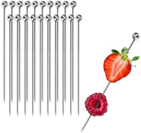Perfekt für deine nächste Party! Dieses Set mit 20 Cocktailspießen aus hochwertigem Edelstahl bringt Stil auf deine Festtafel. Jeder Spieß ist 11 cm lang mit einer 0,8 cm großen Kugel am Ende für rutschfesten Halt. Hergestellt aus lebensmittelechtem 304 Edelstahl - ungiftig, geruchlos, korrosionsbeständig und spülmaschinenfest. Die scharfe Spitze durchsticht mühelos Oliven, Kirschen, Obststücke oder Mini-Sandwiches. Das einteilige Formverfahren ohne Grate garantiert optimale Hygiene. Vielseitig einsetzbar für Cocktail-Garnituren, Käseplatten, Vorspeisen oder Desserts. Die silberne Farbe passt zu jedem Geschirr und die kompakte Aufbewahrung spart Platz. Ideal für Familienfeiern, Barbecues, Hochzeiten oder den professionellen Einsatz in Bars und Restaurants. Umweltfreundliche Alternative zu Einweg-Spießen - langlebig und immer wieder verwendbar. Mach deine kulinarischen Kreationen zum absoluten Eye-Catcher!