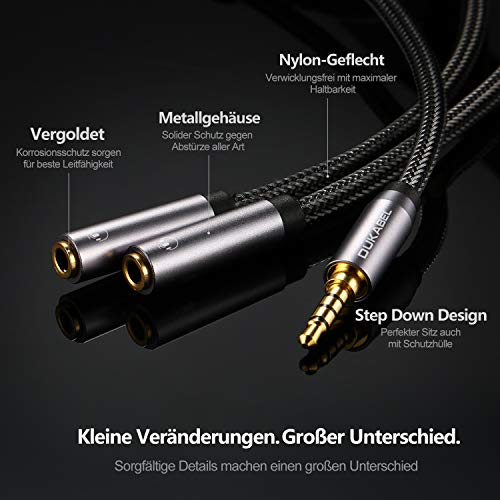 DuKabel Headset Splitter Kabel - Vergoldet & Stark Geflochten | 3,5mm CTIA Auf 2x TRS | 1,2 Meter