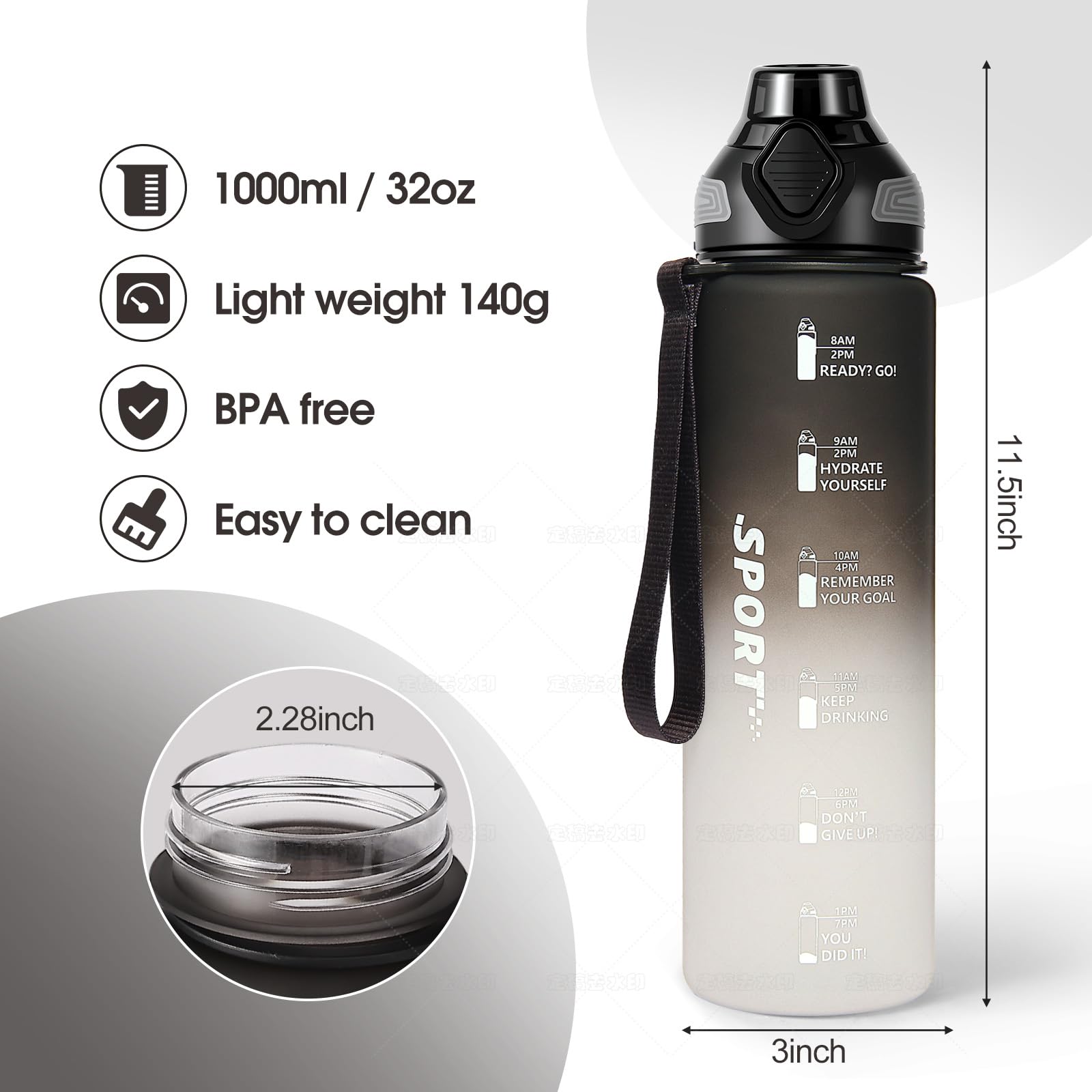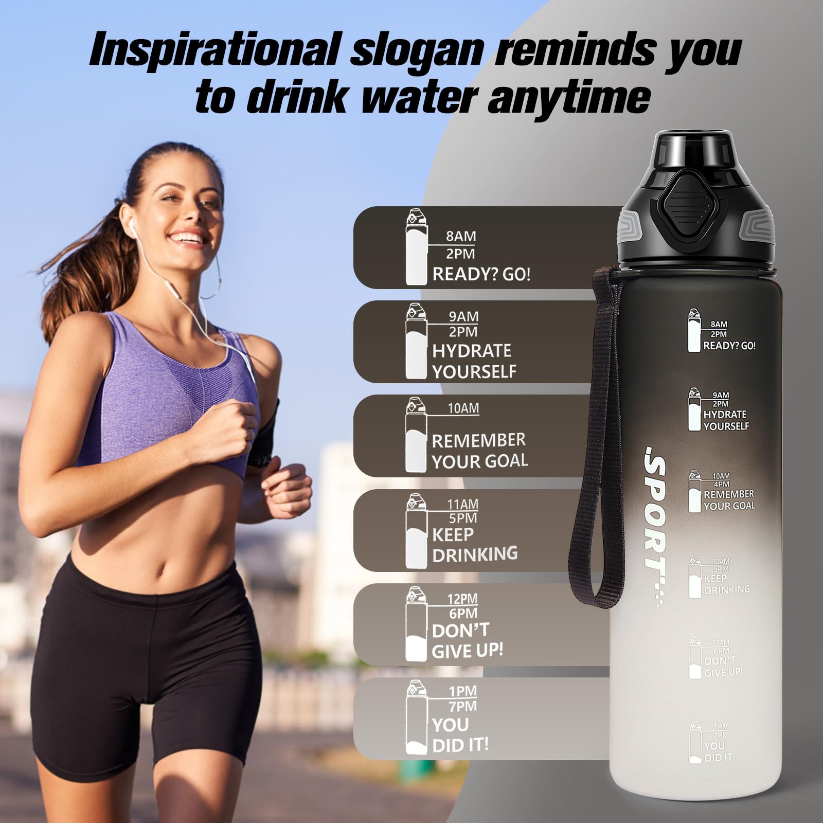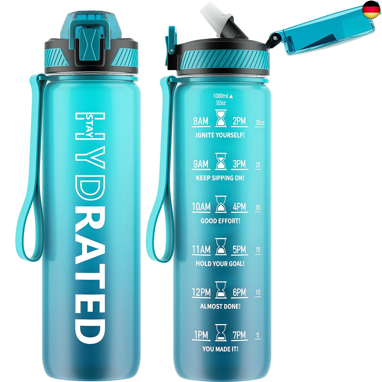 Binudum Trinkflasche 1L BPA-frei - Sportflasche Mit Zeitmarkierung Für Fitness & Alltag
