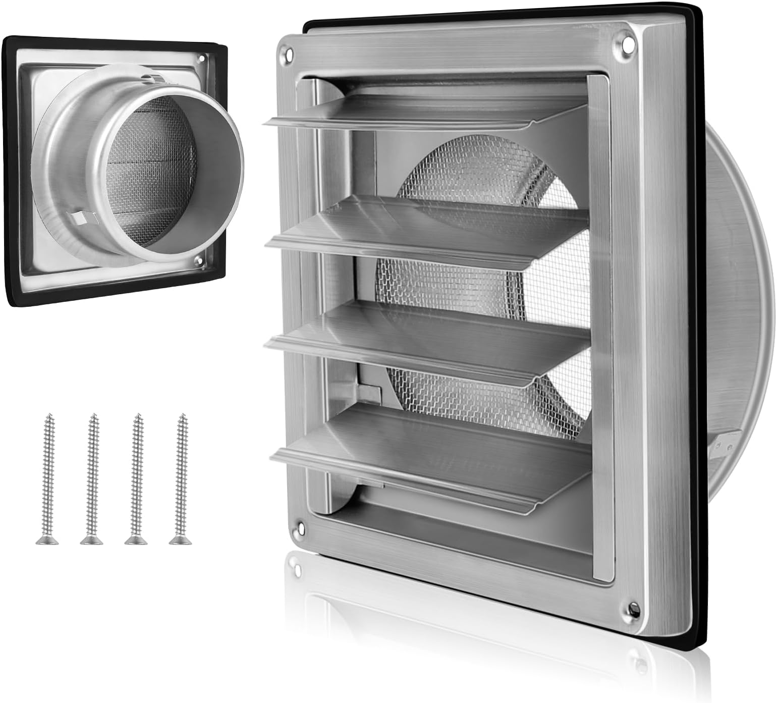 Lüftungsgitter 100mm Mit Insektenschutz - 304 Edelstahl & Rückstauklappe