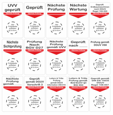 100x Grundplaketten Nächste Prüfung Gemäß UVV - 70x40mm Selbstklebend Inkl. Lochzangen