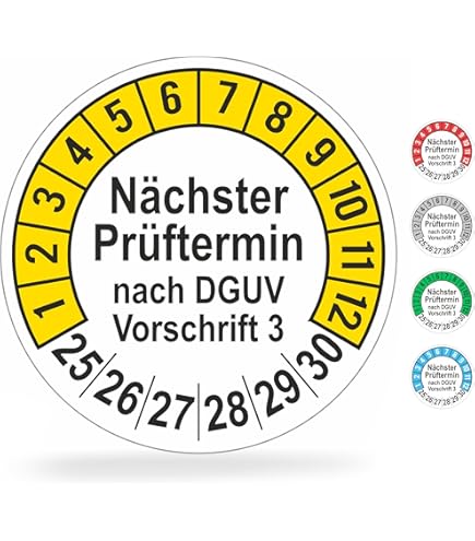 Für alle, die's genau nehmen müssen: Diese Grundplaketten 'Nächste Prüfung gemäß UVV' sind perfekt für die Prüfkennzeichnung in deinem Betrieb. Die Plaketten aus hochwertiger Vinylfolie (70x40 mm) sind selbstklebend und mega widerstandsfähig - wasserfest, kratzfest und temperaturbeständig von -40°C bis +80°C. Passen ideal für 20mm und 30mm Prüfplaketten. Super für Leitern, Feuerlöscher, Arbeitsmittel und alles, was regelmäßig geprüft werden muss. Und das Beste: Es sind gleich 100 Stück auf ner Rolle dabei, plus gratis Lochzangen-Set mit 3mm Rundloch und Kerbzange! Made in Germany - da weißt du, was du kriegst. Einfach von der Rolle abziehen, aufkleben und bei der nächsten Prüfung lochst du einfach das Datum rein. So bleibt alles schön übersichtlich und du bist immer auf der sicheren Seite.