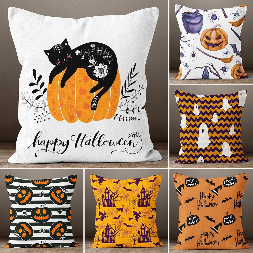 2 Stück Halloween Kissenbezüge 45x45cm - Gruselige Geister Deko Für Herbst Und Halloween