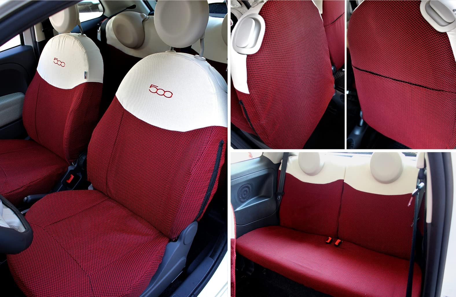 Italfodere Sitzbezüge Für Fiat 500 - Rot/Ecrù Komplettset Made In Italy