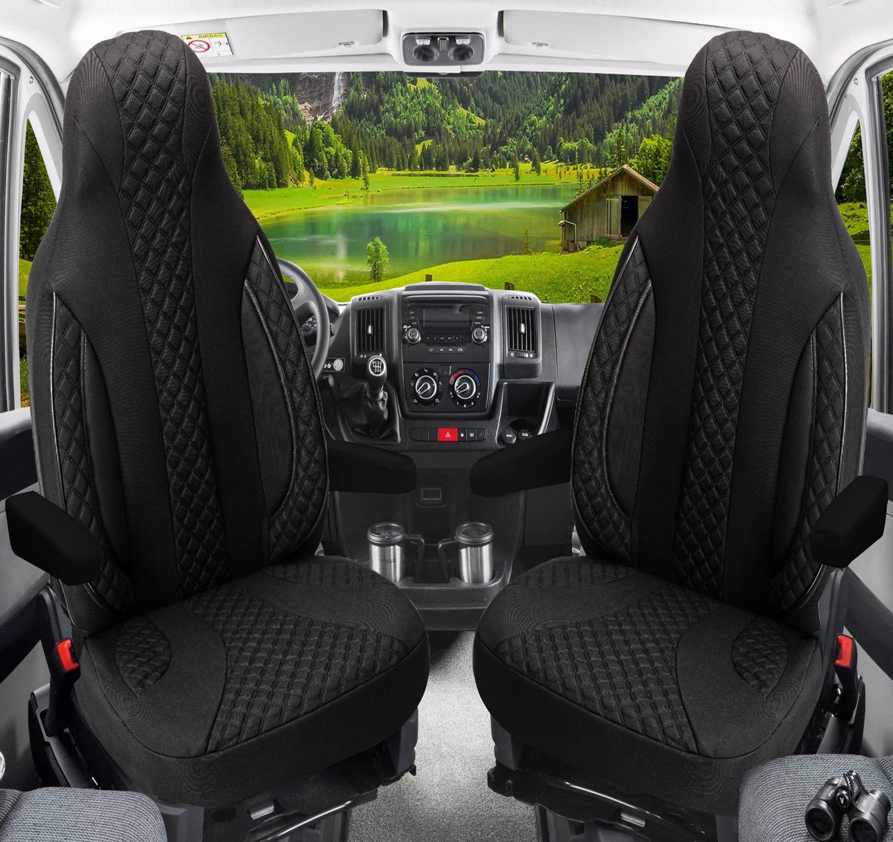 Willst du die Sitze in deinem Pössl Wohnmobil schützen und verschönern? Diese Sitzbezüge sind maßgeschneidert für den Summit Shine (DS7) und passen perfekt für SUMMIT 600L, 600 LR, 640, 540, 540 R, 600 Modelle. Sie sind kompatibel mit Fiat Ducato 250 und Citroen Jumper Kastenwagen. Die Montage ist kinderleicht dank Klettsystem an der Rückenlehne. Die Bezüge sind mit Schaumstoff kaschiert - das macht sie langlebig, pflegeleicht und atmungsaktiv. Perfekt für lange Fahrten, denn sie bieten zusätzlichen Komfort und Schutz. Hergestellt in Deutschland, für Fahrer- und Beifahrersitz, passend auch für Aktivkopfstützen. Einfach anbringen und losfahren!