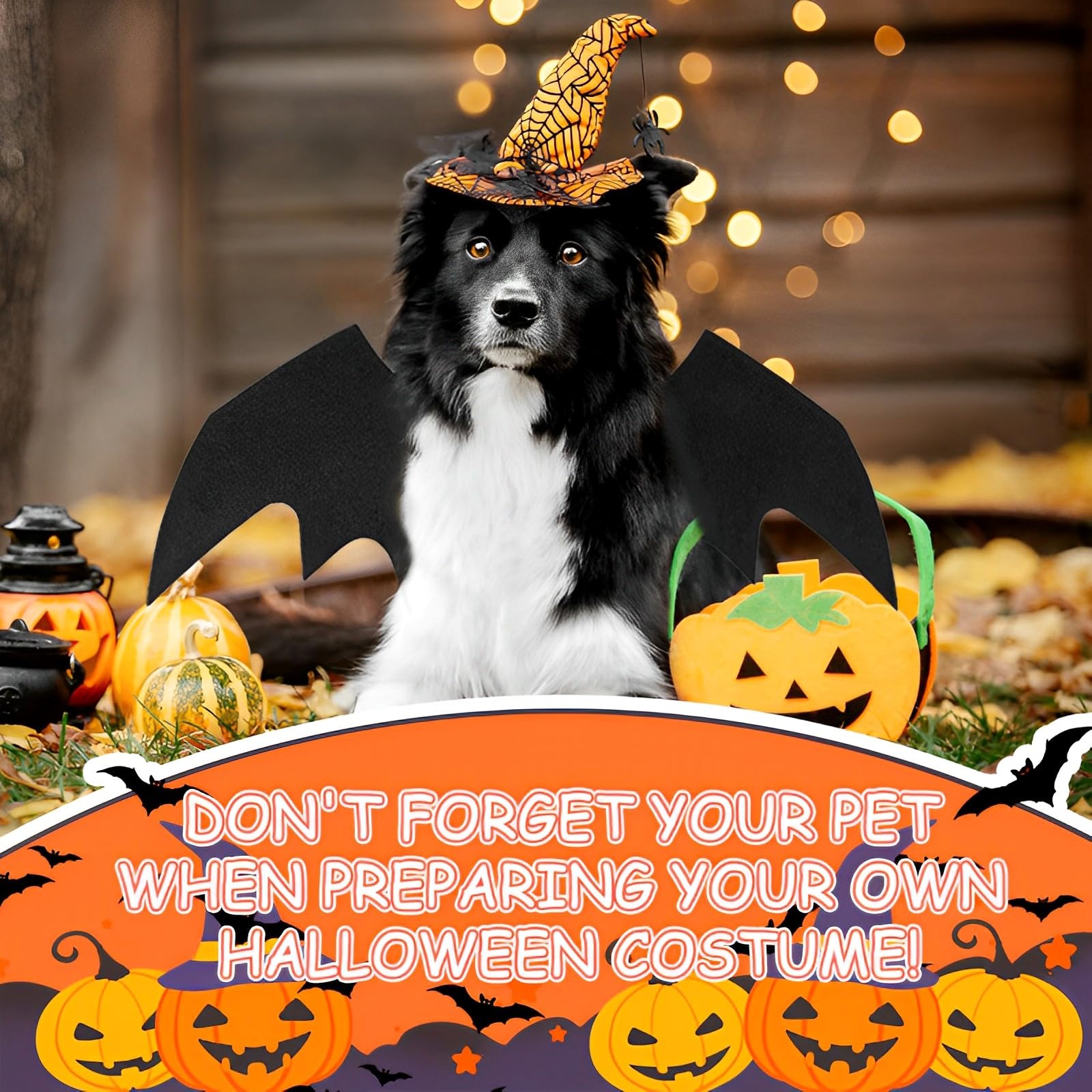 Mach dein Haustier zum Star der Halloween-Party mit diesen niedlichen Fledermausflügeln! In Größe M mit 52 cm Brustumfang und 40 cm Halsumfang passen sie den meisten Hunden und Katzen. Aus weichem Filz gefertigt, sind die Flügel super leicht und angenehm zu tragen. Die Klettverschlüsse machen das An- und Ausziehen zum Kinderspiel und lassen sich perfekt an die Größe deines Tieres anpassen. Mit 48 x 20 cm sind die Flügel imposant, aber nicht zu schwer. Im Set enthalten: 1x Fledermausflügel und 1x kürbisförmige Glocke. Perfekt für Halloween, Weihnachten, Cosplay-Partys oder Fotoshootings. Dein Tier wird zum absoluten Hingucker! Einfach überziehen, festkletten und schon ist dein kleiner Vampir bereit für den großen Auftritt!