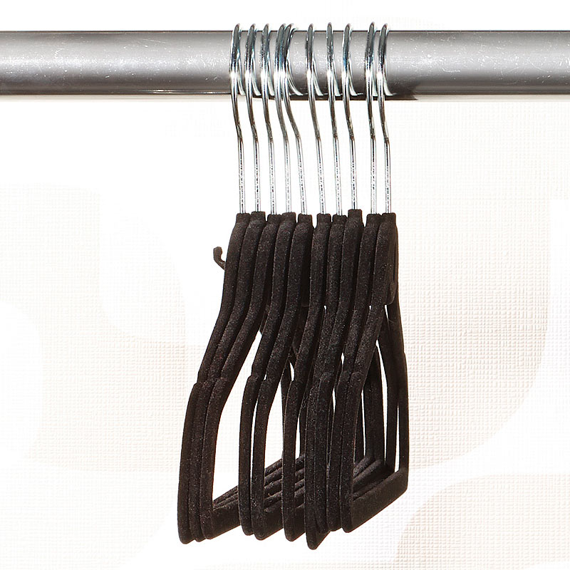 Endlich Ordnung im Kleiderschrank! Mit diesen 60 samtbeschichteten Kleiderbügeln im dunkelgrauen Design schaffst du sofort mehr Platz in deinem Schrank. Die rutschfeste Oberfläche hält selbst empfindliche Kleidung sicher fest - keine Ziehfäden mehr! Jeder Bügel trägt bis zu 4,5 kg, also halten auch schwere Winterjacken und Mäntel problemlos. Die 360° drehbaren Haken sind super praktisch, besonders wenn du Kleidung von der Stange nehmen willst. Und das coole Feature: Integrierte Halter für Krawatten und Schals! So hast du alles griffbereit und nichts verheddert sich mehr. Die Bügel sind nur 41 cm lang und sparen dadurch richtig viel Platz. Perfekt also für alle, die einen gut organisierten Kleiderschrank lieben. Aus strapazierfähigem ABS-Kunststoff gefertigt, halten die Bügel ewig. Ob im Schlafzimmer, im Gästeschrank oder sogar im Koffer als Organizer - diese Bügel sind einfach überall einsetzbar. Die dunkelgraue Farbe sieht dabei noch richtig schick aus. Wenn du also die Nase voll hast von chaotischen Schränken und rutschigen Bügeln, ist dieses Set genau das Richtige für dich. Einfach die Kleidung umhängen und sich über den aufgeräumten Schrank freuen! Die Bügel werden übrigens im umweltfreundlichen Originalkarton geliefert - gut für die Umwelt!