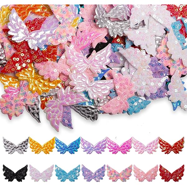 40 Stück Engelsflügel Aufnäher - 64x40 Mm, 2 Farben Glitzernd