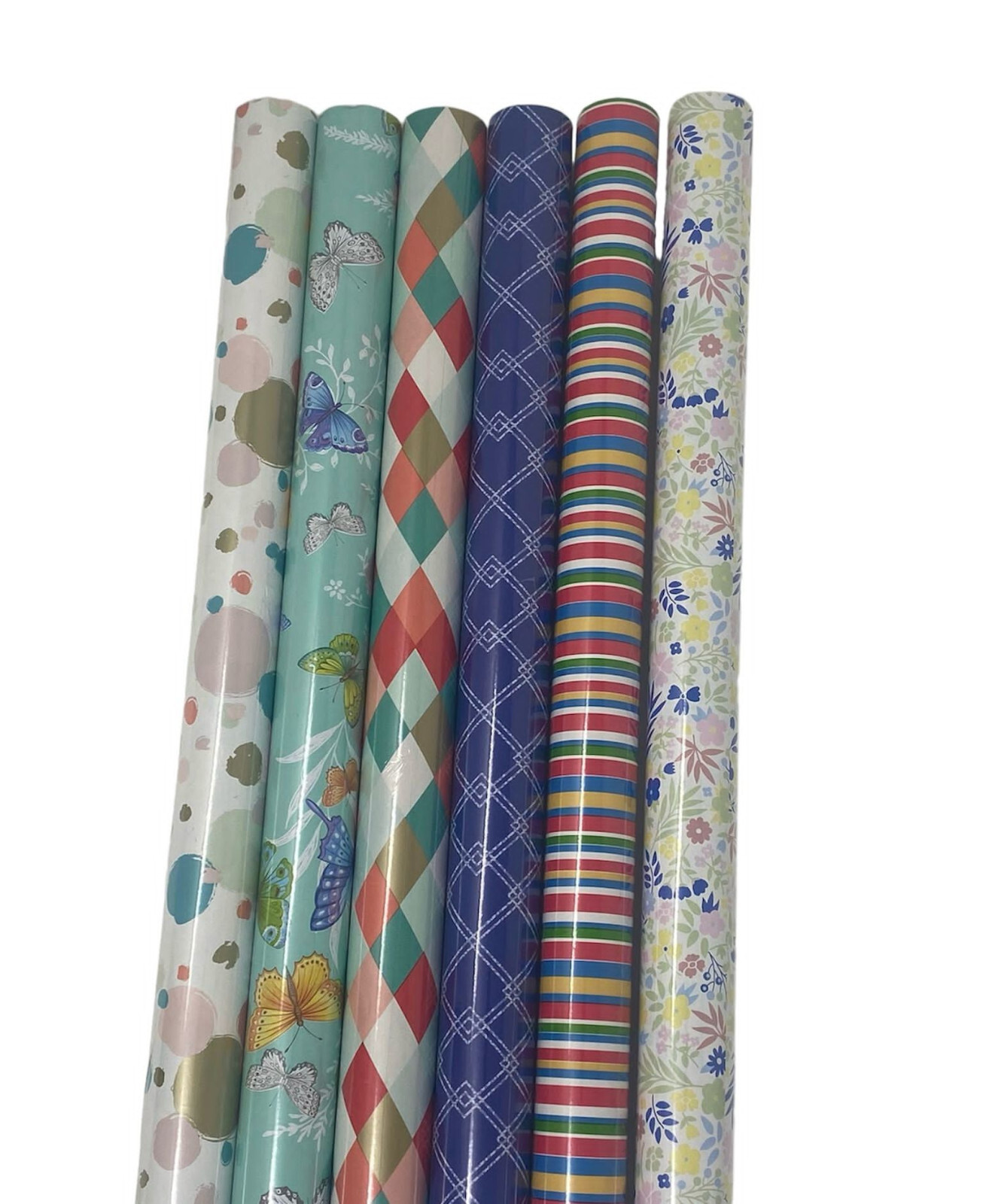 6 Bögen Geschenkpapier Set Mit Schleifen - Für Geburtstag & Feiern | 50x70cm
