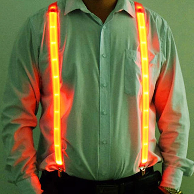 Drei Beleuchtungsmodi stehen zur Auswahl: Dauerlicht, schnelles Blinken und langsames Blinken. Einfach per Knopfdruck umschalten - je nach Stimmung und Musik! Der Hosenträger ist 107-116cm lang und passt sich flexibel an, die Fliege hat einen verstellbaren Halsumfang von 14-23,5cm.