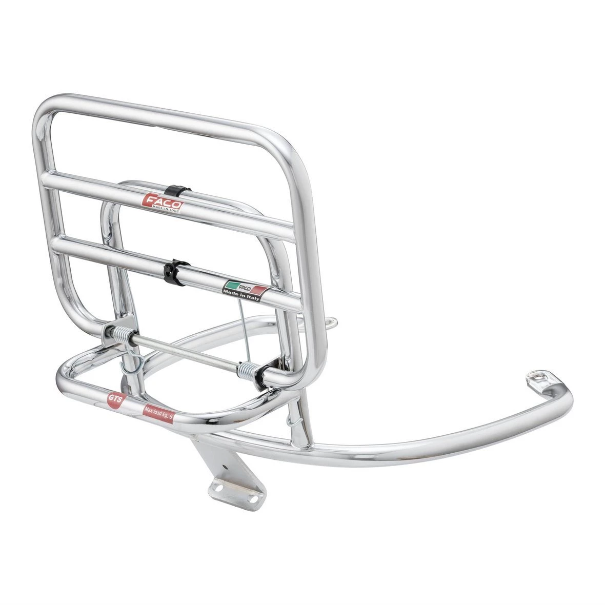 Mehr Stauraum für deine Vespa! Dieser klappbare Gepäckträger von FACO passt perfekt für Vespa GTS und GTV Modelle 250 und 300. Im schicken Chrom-Design, das deine Vespa aufwertet.