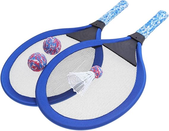 Spielspaß für die Kleinen! Dieses komplette Tennisschläger-Set bringt Action in jeden Garten. Enthalten sind 2 leichte Schläger aus PP-Material mit griffigem Schaumstoff-Handteil - perfekt für Kinderhände! Dazu 4 verschiedene Bälle: 2 Hüpfbälle und 2 bunte Bälle für Abwechslung. Die Schläger sind nicht nur für Tennis geeignet, sondern auch für Badminton und andere Ballspiele. Das dehnbare Netz sorgt für gute Elastizität und Haltbarkeit. Mit 38,5cm Länge ideal für Kinderhände. Fördert die Hand-Auge-Koordination und macht einfach riesigen Spaß! Perfekt für den Garten, Strand, Park oder Schwimmbad. Ob alleine, mit Geschwistern oder Freunden - hier ist Action garantiert! Ein tolles Geschenk für kleine Sportbegeisterte. Hol dir den Spielspaß für draußen - deine Kinder werden es lieben!
