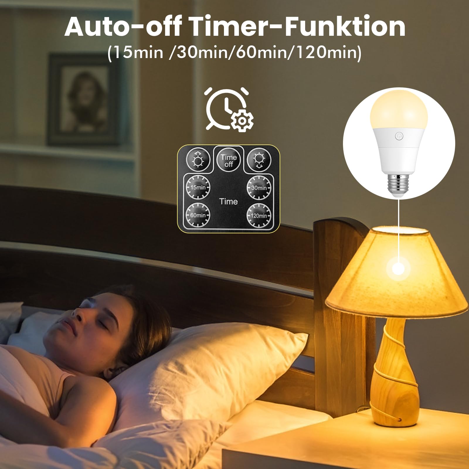 Technische Daten: 7W, 2000mAh Akku, E27 Fassung. Im Set: 2 Glühbirnen, 2 Fernbedienungen, USB-C Kabel. Aus ABS+PC - robust und langlebig.