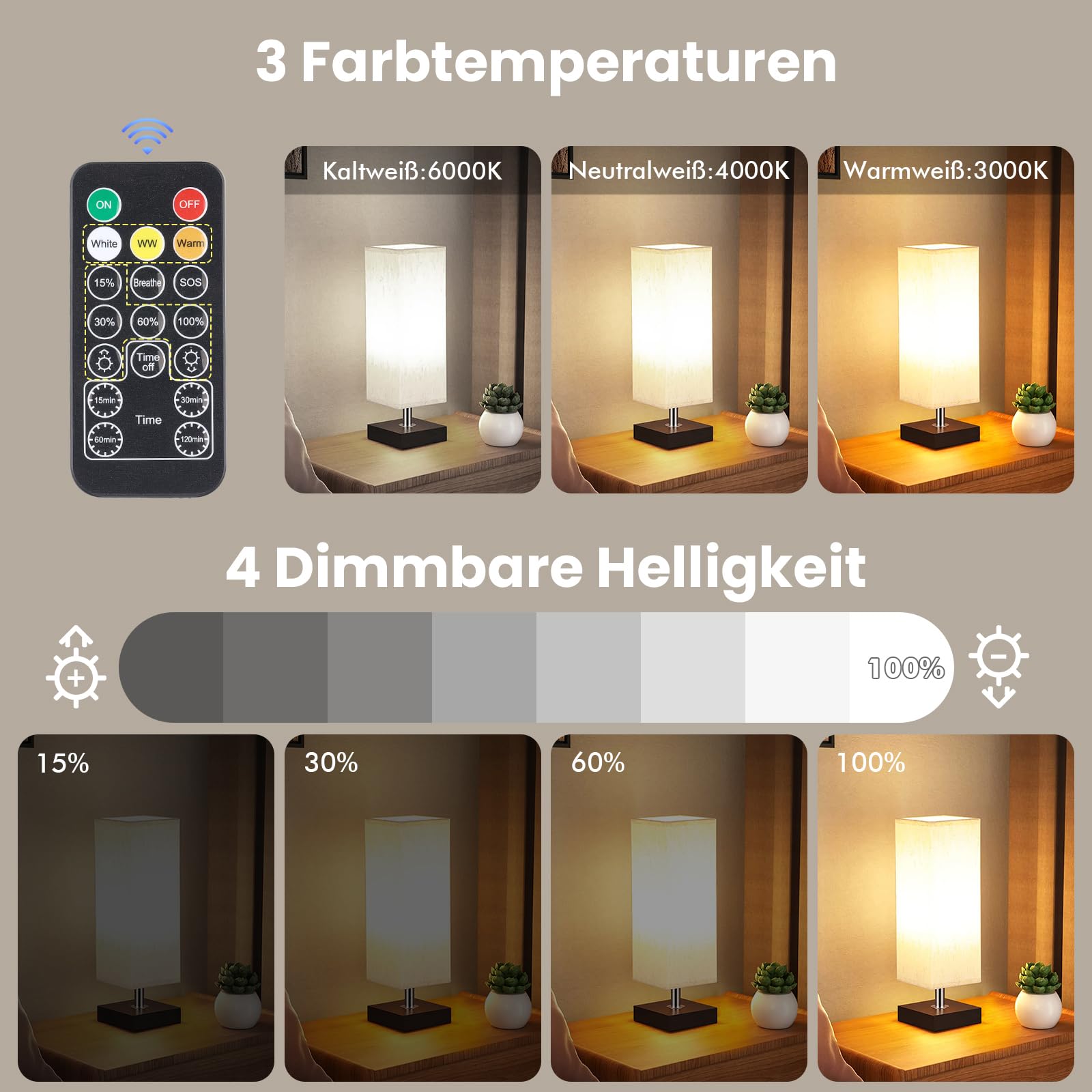 Mit Fernbedienung steuerbar: Wechsel zwischen warmweiß, neutralweiß und kaltweiß. Vier Helligkeitsstufen und Timer-Funktion (15-120 Minuten). Die magnetische Basis macht das Aufladen einfach - einfach abnehmen und anstecken.