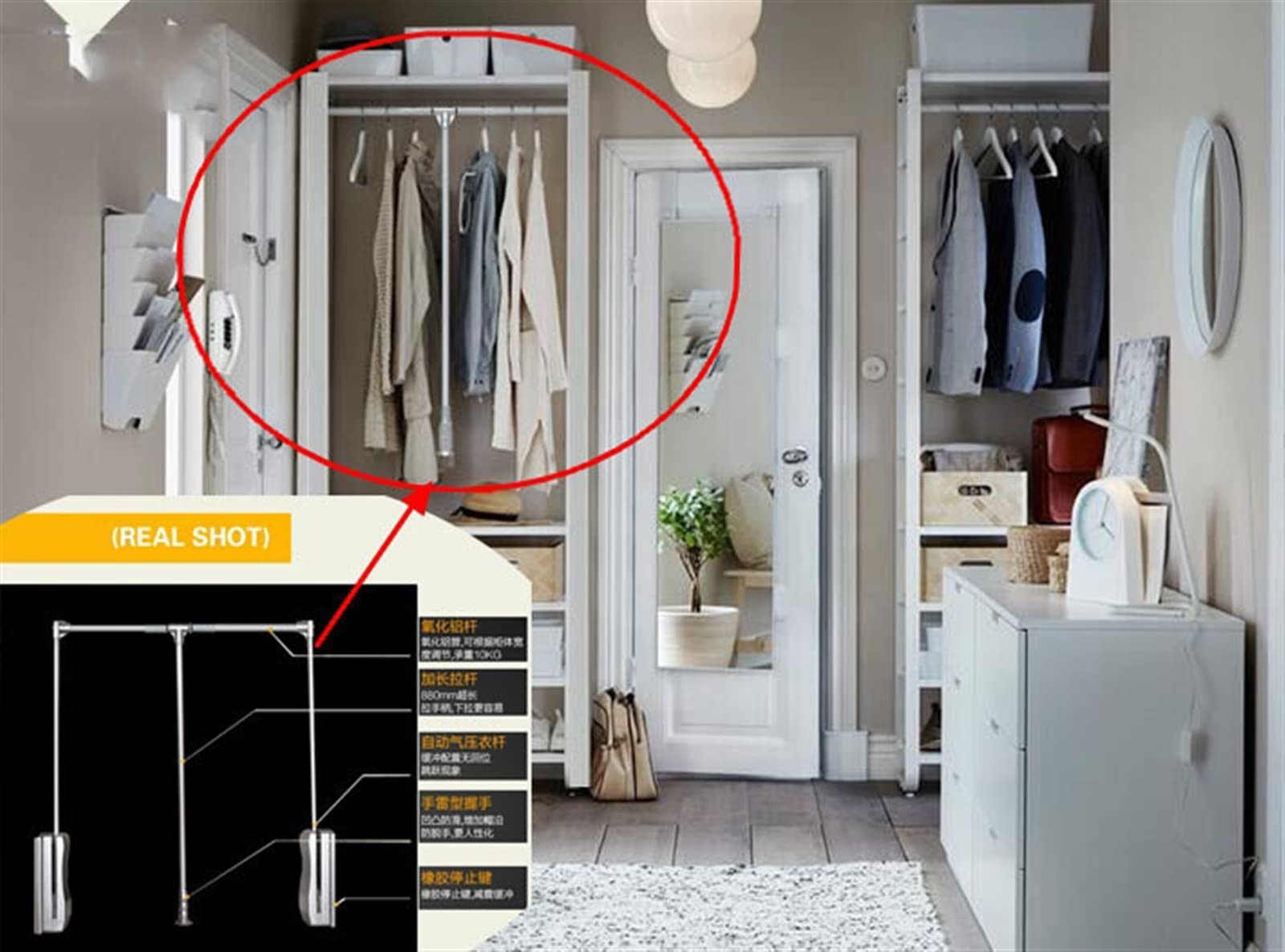 BLUEZY Kleiderstange 85cm Aluminium - Höhenverstellbar Für Schrank Bis 35kg