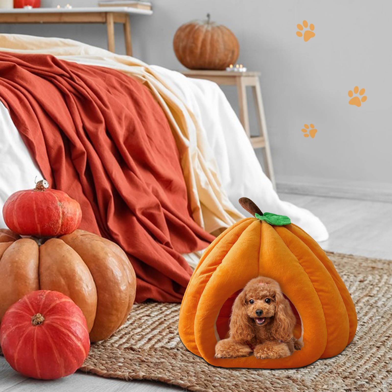 Hausio Kürbis Katzenhaus - Niedliche Katzenhöhle Mit Abnehmbarem Kissen Für Katzen & Kleine Hunde
