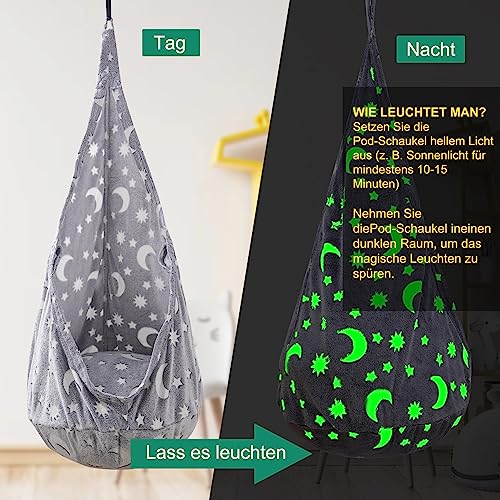 Wow, diese Hängehöhle ist ja der absolute Traum für Kinder! Wie eine gemütliche Höhle zum Reinziehen und Entspannen. Mit weichem Velvet-Kissen super bequem und die robuste Verarbeitung sorgt für Sicherheit. Hält bis zu 80 kg aus und ist damit für die meisten Kinder perfekt geeignet. Komplettset mit Karabinern und Betonanker für einfache Montage an Decke, Balken oder Bäumen. Das atmungsaktive Baumwollmaterial ist angenehm auf der Haut. Perfekt fürs Kinderzimmer, den Garten oder den Balkon. Ob zum Lesen, Musikhören oder einfach zum Träumen - diese Hängehöhle wird zum Lieblingsplatz deines Kindes. Einfach aufhängen, reinsetzen und die entspannte Schaukelzeit genießen - pures Wohlfühlvergnügen für Groß und Klein!
