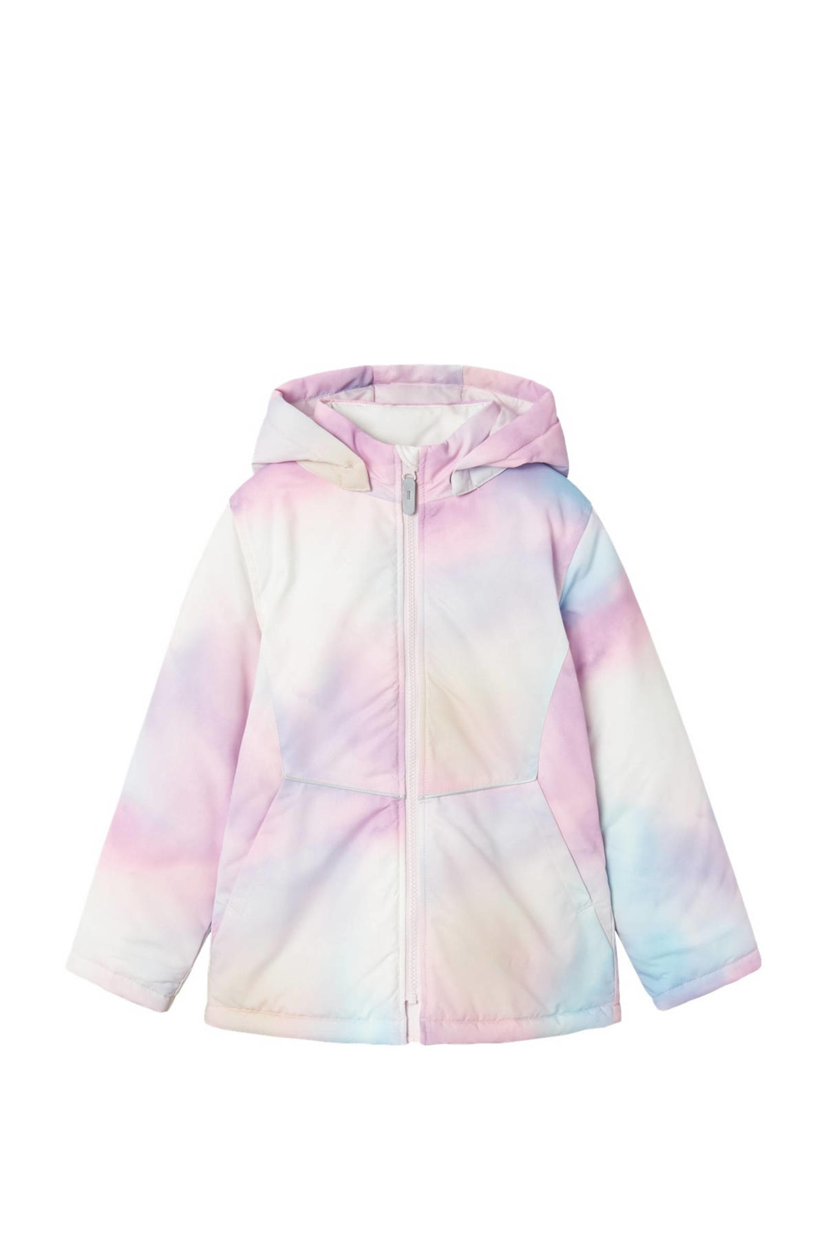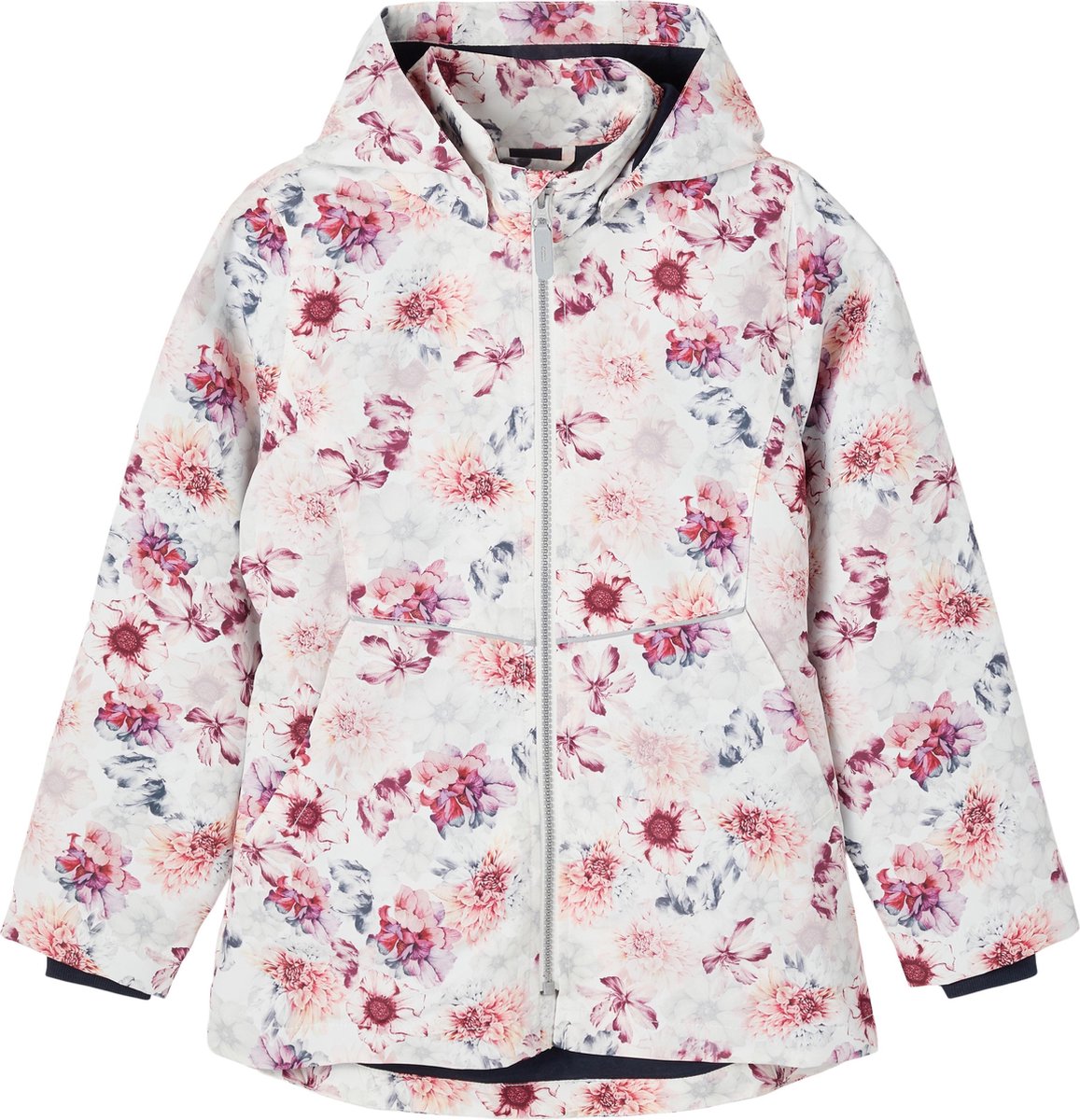 Name It Mädchen Jacke AOP - Frühlingsjacke Mit Allover-Print, Abnehmbarer Kapuze In Whisper White