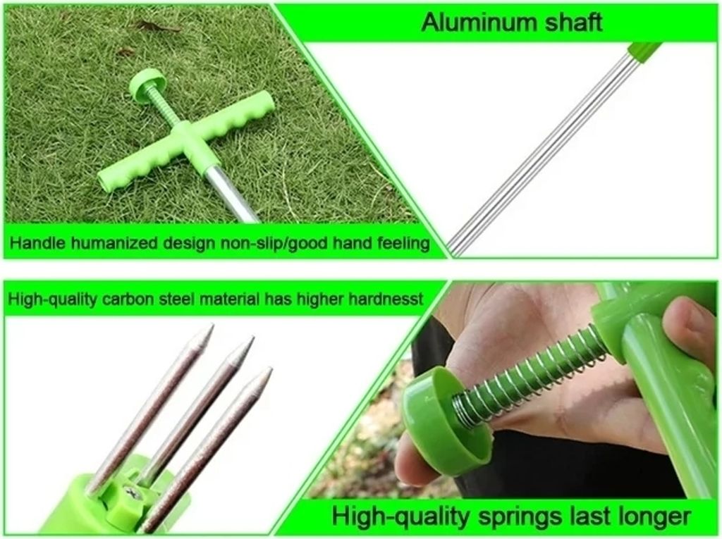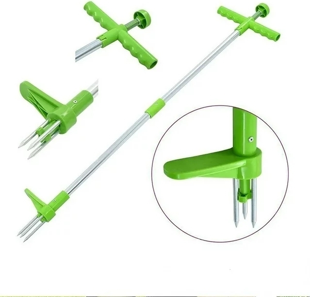 Hey Gärtner! Lästiges Unkraut zupfen macht keinen Spaß? Mit diesem praktischen Unkrautpflücker musst du dich nicht mehr bücken! Der 50cm lange Griff ermöglicht bequemes Arbeiten im Stehen - dein Rücken wird's dir danken. Mit den 4 robusten Zähnen aus strapazierfähigem Legierungsmaterial packst du das Unkraut sicher an der Wurzel und ziehst es komplett raus. So kommt es nicht so schnell wieder! Super leicht und handlich, perfekt für den Hausgarten, aber auch für größere Flächen geeignet. Das ergonomische Design liegt gut in der Hand und die Reinigung geht fix. Ob Löwenzahn, Giersch oder andere Unkräuter - dieses Tool macht Jäten endlich erträglich. Einfach in den Boden stechen, drehen und das Unkraut ist Geschichte. Dein Garten wird sauberer und du schonst dabei deinen Rücken!
