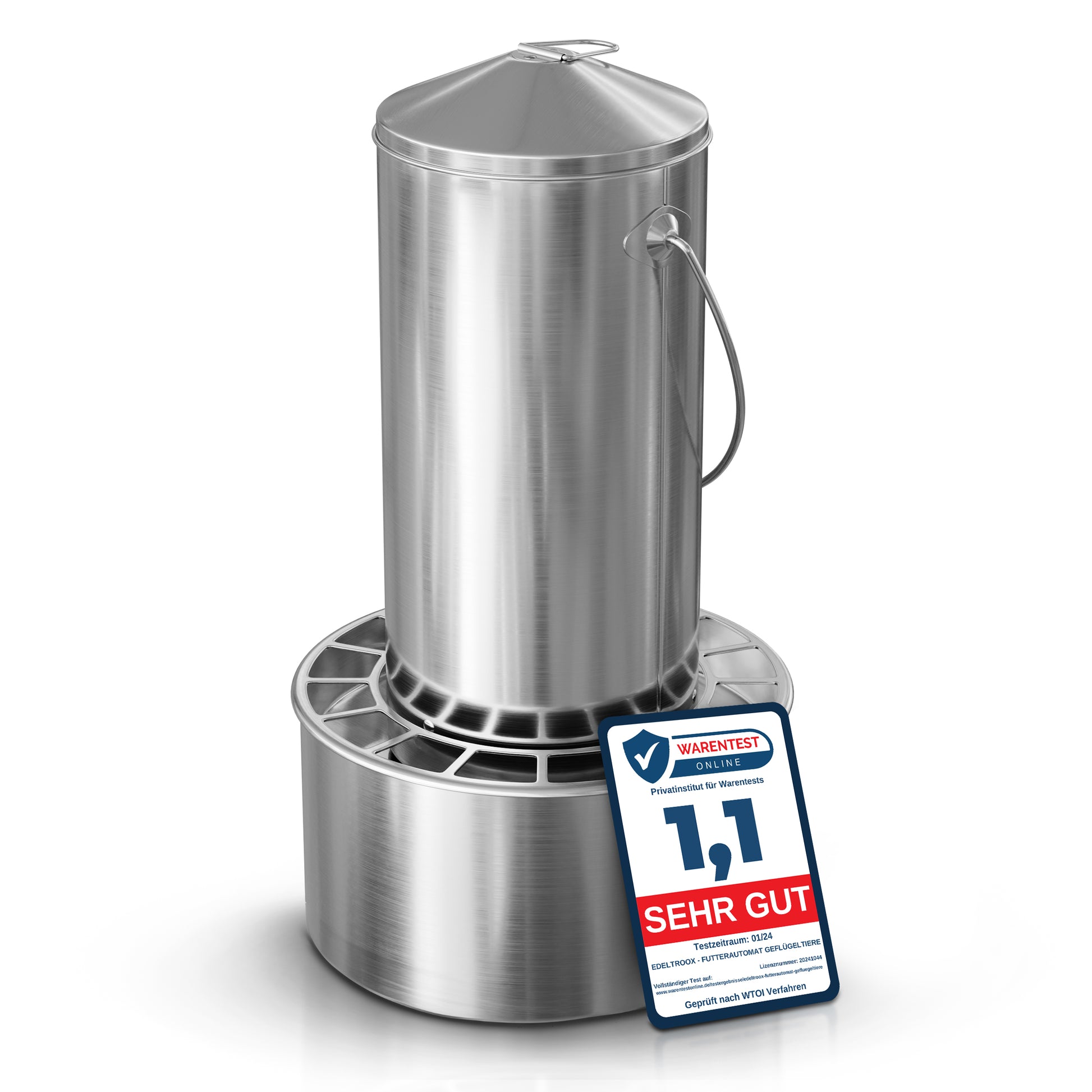 Endlich Schluss mit täglichem Füttern! Dieser automatische Hühnerfutterautomat aus Edelstahl hält bis zu 5kg Futter bereit - genug für 6-12 Hühner für etwa eine Woche. Durch das Tretmechanismus-Design öffnet sich der Deckel nur, wenn Hühner drauftreten - so bleibt das Futter sauber und wird nicht verschwendet. Super stabil und rostfrei, perfekt für den Einsatz im Freien. Mit 55,9cm Breite können bis zu 4 Hühner gleichzeitig fressen. Inklusive Metall-Futterschaufel. Auch geeignet für Enten, Gänse und Kaninchen. Spart Zeit und Futterkosten!
