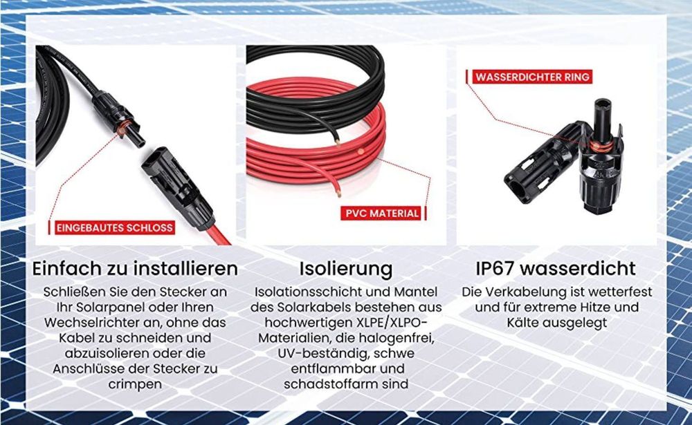 Deine Solaranlage verdient professionelle Anschlüsse! Diese Kabeldurchführung aus witterungsbeständigem ABS-Material schützt deine Verbindungen vor Regen, UV-Strahlung und extremen Temperaturen. Inklusive 2m 10 AWG Solarkabel in Schwarz/Rot mit hochleitfähigen Kupferdrähten für minimale Stromverluste. Die Stecker mit praktischem Schnapp-Design machen das Verbinden super einfach - kein Werkzeug nötig! Zwei Montagearten möglich: Entweder mit Kleber oder den mitgelieferten Edelstahl-Schrauben befestigen. Komplett-Set mit allem, was du brauchst - einfach auspacken und installieren. Perfekt für Wohnmobile, Boote, Campingbusse und Lieferwagen. So wird deine Solarinstallation nicht nur sicher, sondern sieht auch noch professionell aus!