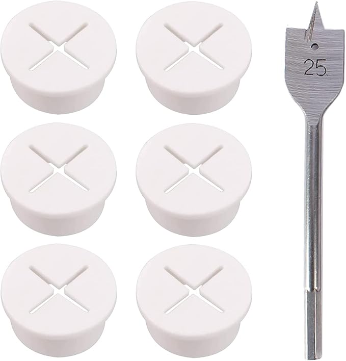 Schluss mit dem Kabelsalat! Diese 12 weißen Silikon-Kabeldurchführungen bringen Ordnung in dein Zuhause oder Büro. Perfekt für vorgebohrte Löcher bis 1 Zoll Durchmesser in Tischen, Wänden oder Möbeln. Die kreuzförmige Öffnung nimmt mehrere Kabel aus jeder Richtung auf - super flexibel! Einfach in die Löcher drücken, kein Kleber oder Werkzeug nötig. Schützt deine Kabel vor scharfen Kanten und sieht dabei noch ordentlich aus. Ob am Computertisch, TV-Möbel oder im Büro - damit werden Kabel endlich unsichtbar und organisiert. Jedes Set enthält 12 Stück in 2,9x1,2cm, wasserdicht und aus hochwertigem Silikon. Einfach einstecken, Kabel durchführen und sich über mehr Ordnung freuen! Damit wird dein Arbeitsplatz zum richtigen Hingucker ohne Kabelwirrwarr.