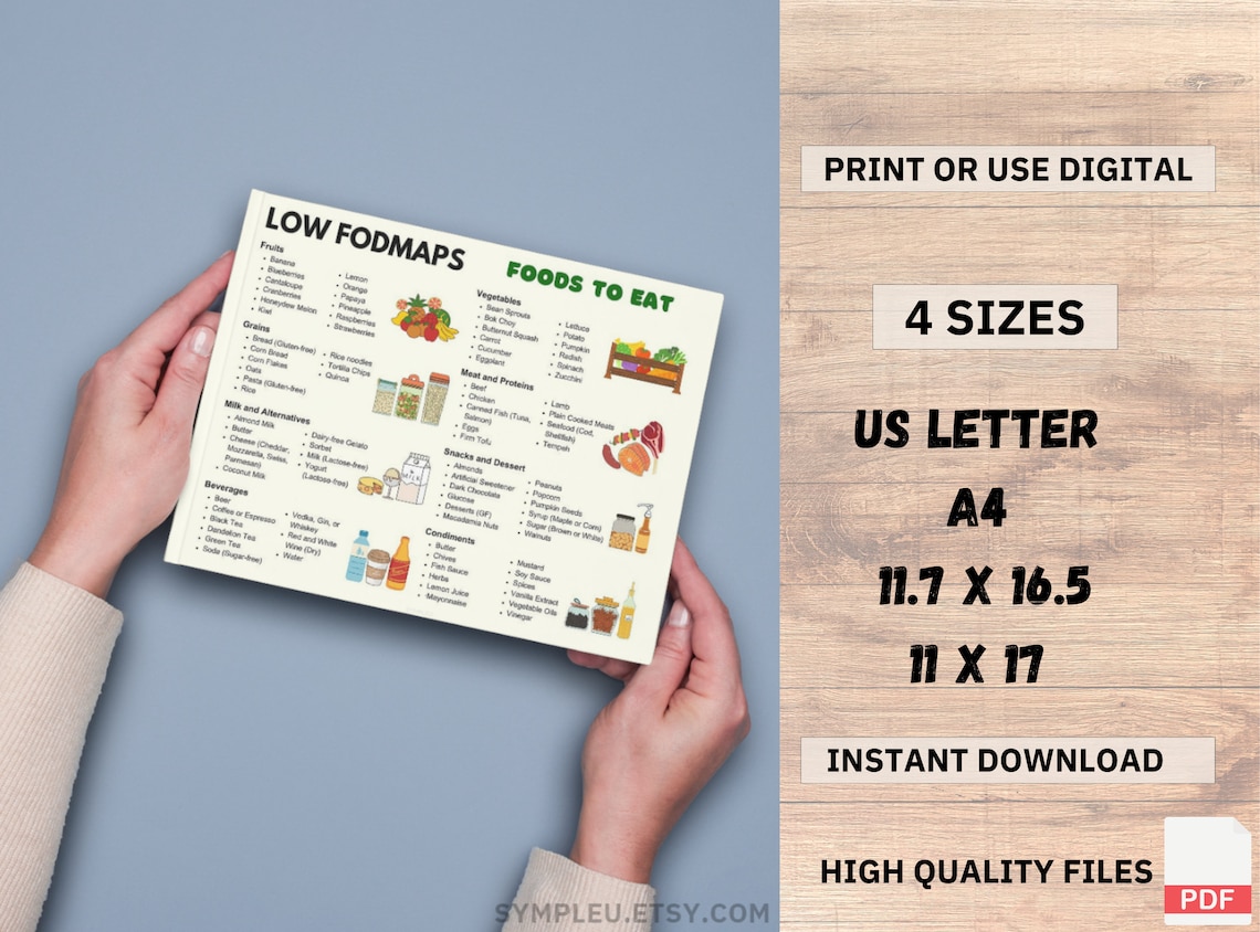FODMAP Lebensmittelliste Poster - Ernährungsplaner Für Reizdarm & Verdauungsgesundheit